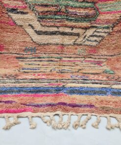 Beni M'Guild rugs, originating from the Beni M'Guild tribe in the Middle Atlas Mountains of Morocco, are striking examples of traditional Berber craftsmanship. These handwoven rugs are characterized by their deep, bold colors, intricate geometric patterns, and the use of symbolic motifs that convey the tribe's cultural stories. Often featuring a central composition surrounded by borders, Beni M'Guild rugs showcase the weaver's artistry and attention to detail. With a plush pile and a blend of rich, earthy tones, these rugs not only add warmth and texture to a space but also serve as timeless pieces that embody the heritage and creativity of the Beni M'Guild tribe.