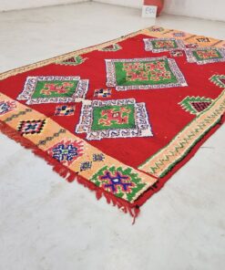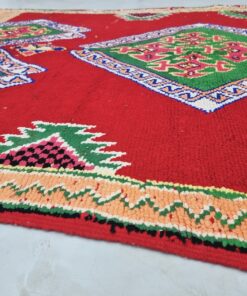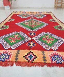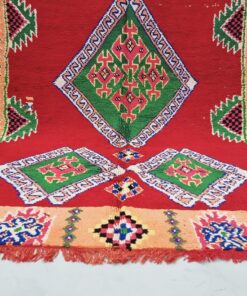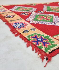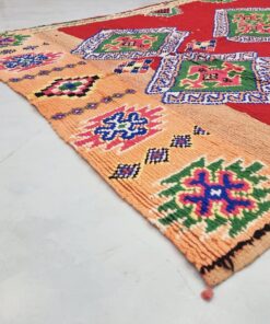 Beni M'Guild rugs, originating from the Beni M'Guild tribe in the Middle Atlas Mountains of Morocco, are striking examples of traditional Berber craftsmanship. These handwoven rugs are characterized by their deep, bold colors, intricate geometric patterns, and the use of symbolic motifs that convey the tribe's cultural stories. Often featuring a central composition surrounded by borders, Beni M'Guild rugs showcase the weaver's artistry and attention to detail. With a plush pile and a blend of rich, earthy tones, these rugs not only add warmth and texture to a space but also serve as timeless pieces that embody the heritage and creativity of the Beni M'Guild tribe.