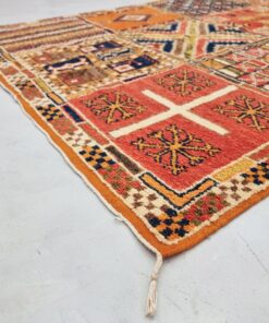 Taznakht rugs, hailing from the town of Taznakht in the High Atlas region of Morocco, are woven treasures that reflect the rich cultural tapestry of the Berber people. Known for their vibrant colors and intricate designs, Taznakht rugs often feature geometric patterns and symbolic motifs, each telling a unique story. The weavers infuse these rugs with a bold, lively spirit, utilizing a diverse palette and skillful techniques. Taznakht rugs not only serve as beautiful and functional floor coverings but also stand as proud representations of Berber tradition and artistic expression.