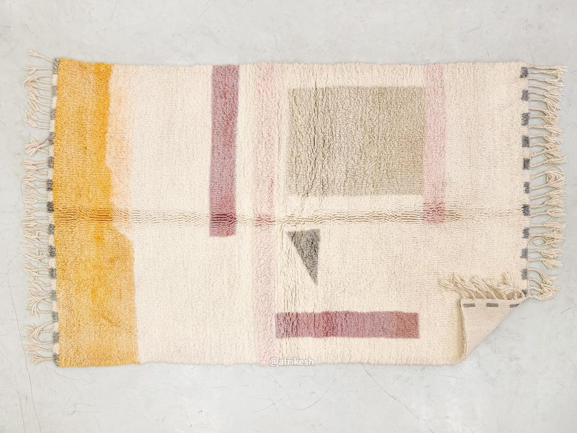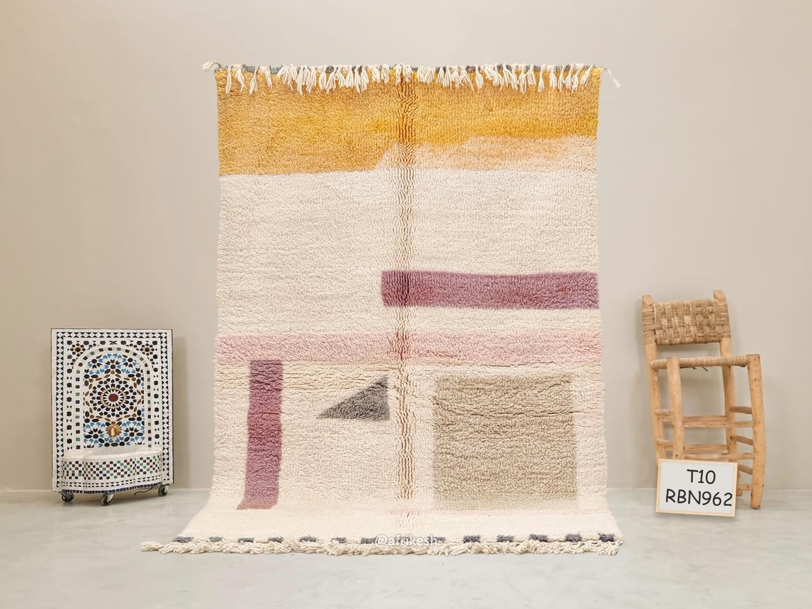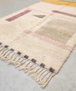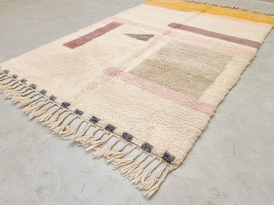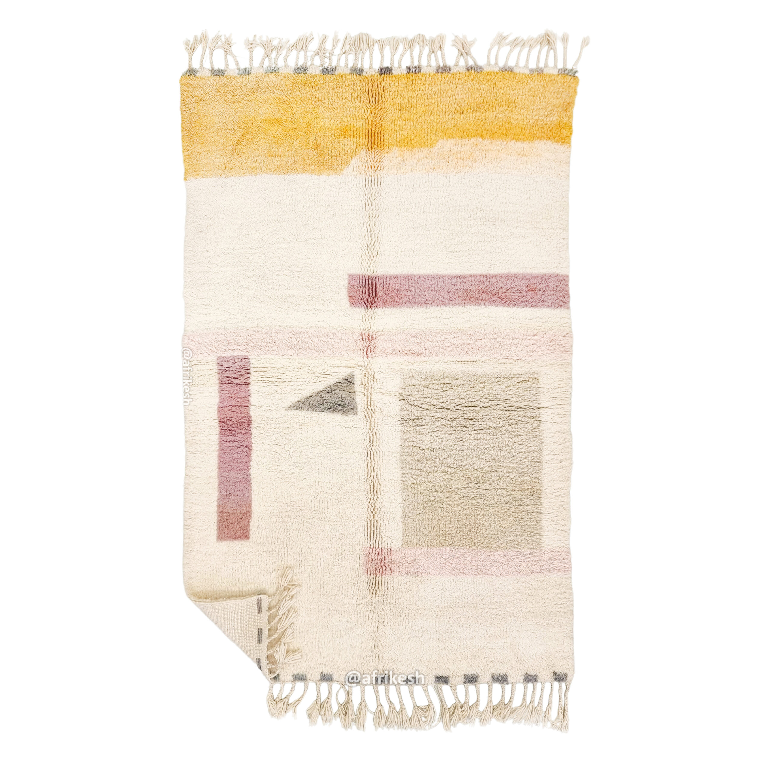 Moroccan Handmade Abstract Carpet | Beni Ourain White and Yellow Rug – Custom Sizes