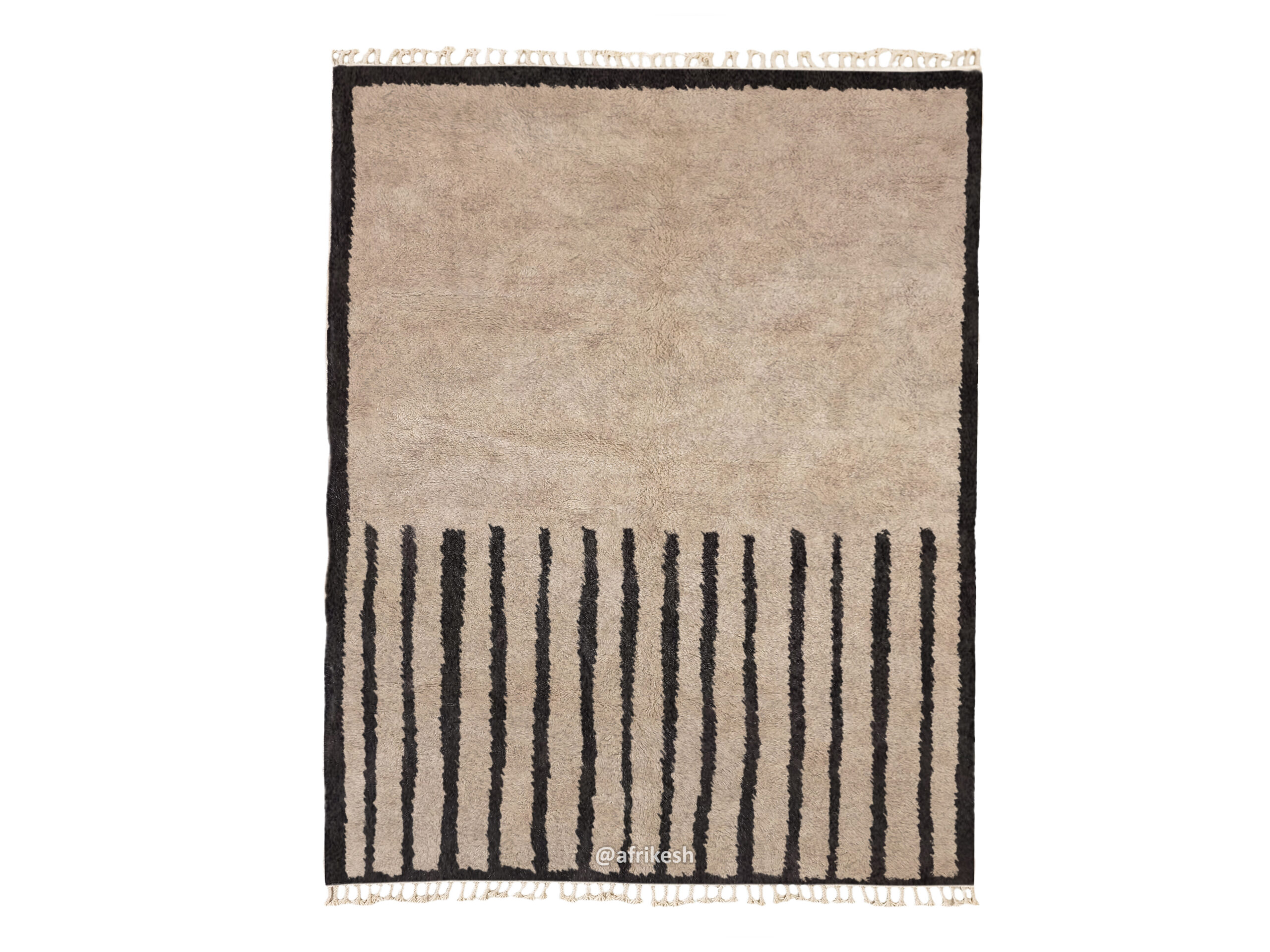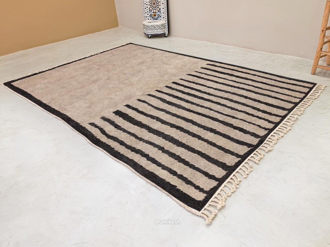 Discover Beni Ourain rugs by Afrikesh, crafted by the Beni Ourain tribe in Morocco's Atlas Mountains. These custom size rugs feature undyed wool and geometric patterns that tell a rich cultural story. With their neutral color palette and traditional craftsmanship, Beni rugs offer both aesthetic appeal and historical significance.