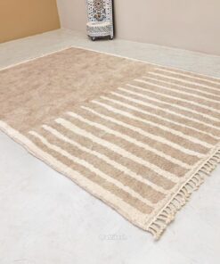 Beige and white Striped Rug | Moroccan Beni Ourain Rug – Custom Sizes