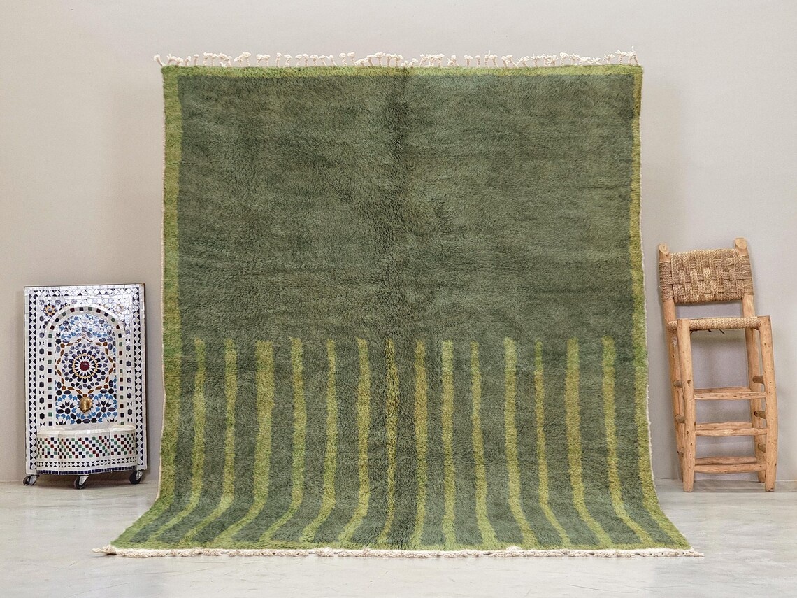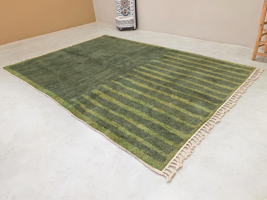 Green Striped Rug | Moroccan Beni Ourain Rug – Custom Sizes
