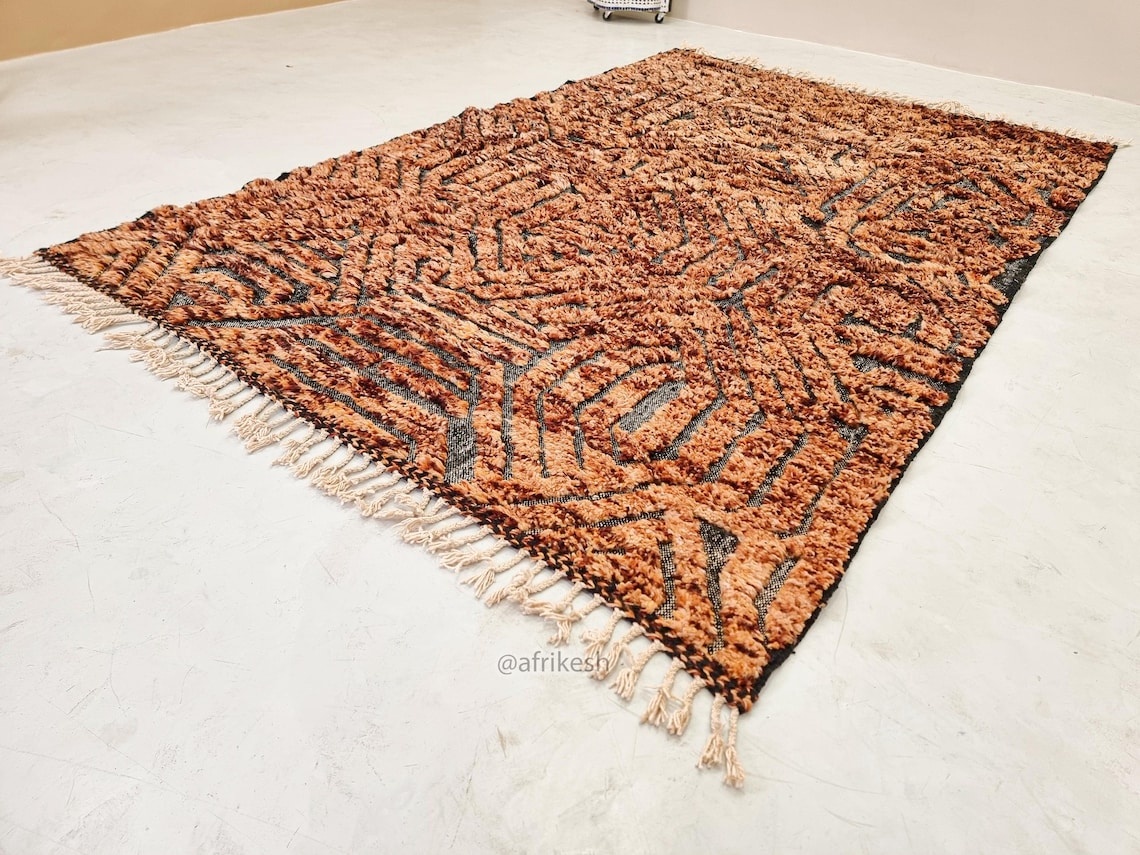 Discover Beni Ourain rugs by Afrikesh, crafted by the Beni Ourain tribe in Morocco's Atlas Mountains. These custom size rugs feature undyed wool and geometric patterns that tell a rich cultural story. With their neutral color palette and traditional craftsmanship, Beni rugs offer both aesthetic appeal and historical significance.