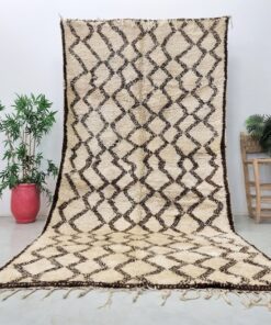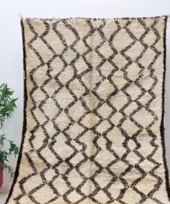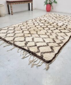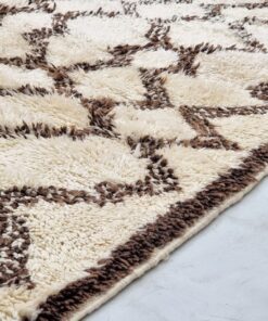 Beni Ourain Cream and Brown Rug – Vintage Geometric Rug 6×12