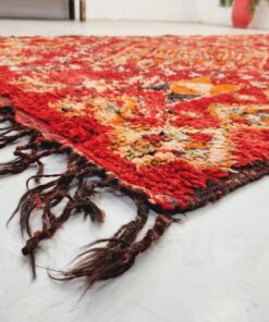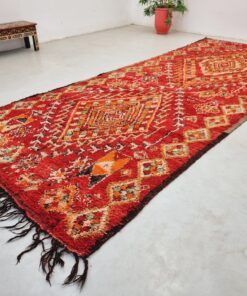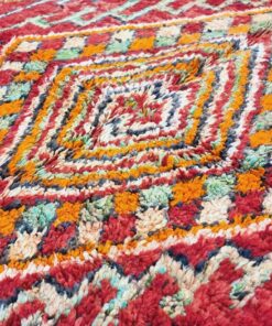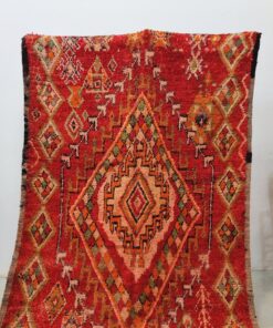 Beni M'Guild rugs, originating from the Beni M'Guild tribe in the Middle Atlas Mountains of Morocco, are striking examples of traditional Berber craftsmanship. These handwoven rugs are characterized by their deep, bold colors, intricate geometric patterns, and the use of symbolic motifs that convey the tribe's cultural stories. Often featuring a central composition surrounded by borders, Beni M'Guild rugs showcase the weaver's artistry and attention to detail. With a plush pile and a blend of rich, earthy tones, these rugs not only add warmth and texture to a space but also serve as timeless pieces that embody the heritage and creativity of the Beni M'Guild tribe.