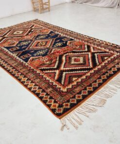Taznakht rugs, hailing from the town of Taznakht in the High Atlas region of Morocco, are woven treasures that reflect the rich cultural tapestry of the Berber people. Known for their vibrant colors and intricate designs, Taznakht rugs often feature geometric patterns and symbolic motifs, each telling a unique story. The weavers infuse these rugs with a bold, lively spirit, utilizing a diverse palette and skillful techniques. Taznakht rugs not only serve as beautiful and functional floor coverings but also stand as proud representations of Berber tradition and artistic expression.