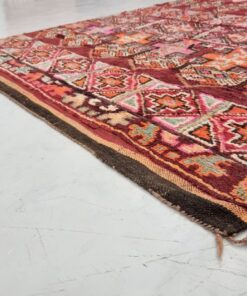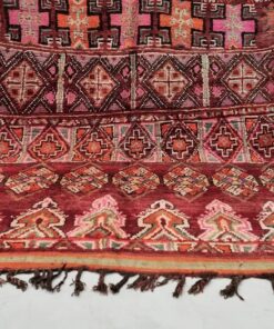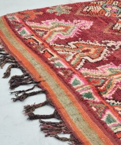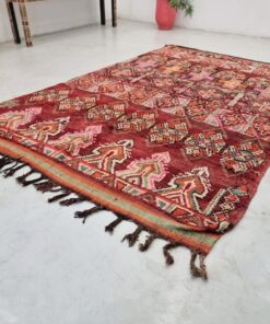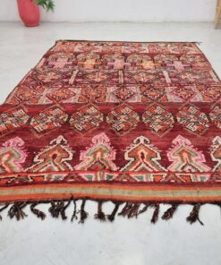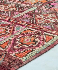 Beni M'Guild rugs, originating from the Beni M'Guild tribe in the Middle Atlas Mountains of Morocco, are striking examples of traditional Berber craftsmanship. These handwoven rugs are characterized by their deep, bold colors, intricate geometric patterns, and the use of symbolic motifs that convey the tribe's cultural stories. Often featuring a central composition surrounded by borders, Beni M'Guild rugs showcase the weaver's artistry and attention to detail. With a plush pile and a blend of rich, earthy tones, these rugs not only add warmth and texture to a space but also serve as timeless pieces that embody the heritage and creativity of the Beni M'Guild tribe.