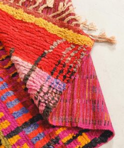 Boujaad rugs, originating from the eponymous region in the Middle Atlas Mountains of Morocco, are captivating expressions of traditional craftsmanship. Known for their vibrant colors, intricate geometric patterns, and a distinctive use of red and pink hues, Boujaad rugs exude warmth and cultural richness. These handwoven gems often feature asymmetrical designs, reflecting the weaver's personal creativity within the framework of age-old techniques. A Boujaad rug is not merely a floor covering; it's a testament to the artisan's skill, the region's heritage, and the vibrant spirit of Moroccan craftsmanship.