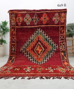 Maroon Rug – Moroccan Vintage Geometric Carpet 6×9
