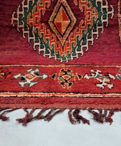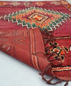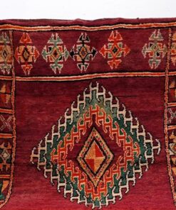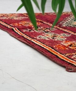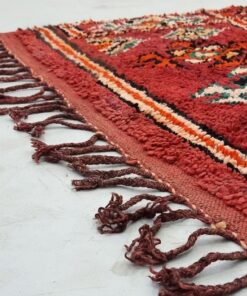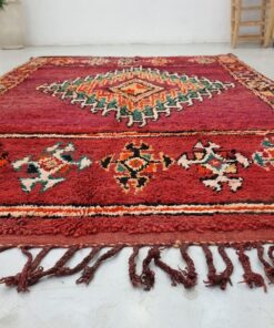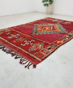 Beni M'Guild rugs, originating from the Beni M'Guild tribe in the Middle Atlas Mountains of Morocco, are striking examples of traditional Berber craftsmanship. These handwoven rugs are characterized by their deep, bold colors, intricate geometric patterns, and the use of symbolic motifs that convey the tribe's cultural stories. Often featuring a central composition surrounded by borders, Beni M'Guild rugs showcase the weaver's artistry and attention to detail. With a plush pile and a blend of rich, earthy tones, these rugs not only add warmth and texture to a space but also serve as timeless pieces that embody the heritage and creativity of the Beni M'Guild tribe.