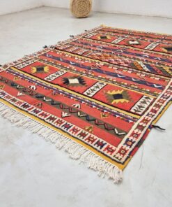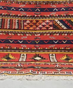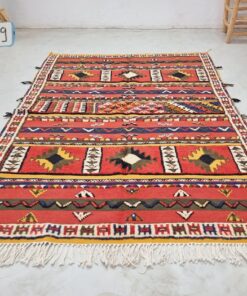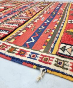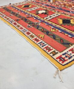 Taznakht rugs, hailing from the town of Taznakht in the High Atlas region of Morocco, are woven treasures that reflect the rich cultural tapestry of the Berber people. Known for their vibrant colors and intricate designs, Taznakht rugs often feature geometric patterns and symbolic motifs, each telling a unique story. The weavers infuse these rugs with a bold, lively spirit, utilizing a diverse palette and skillful techniques. Taznakht rugs not only serve as beautiful and functional floor coverings but also stand as proud representations of Berber tradition and artistic expression.