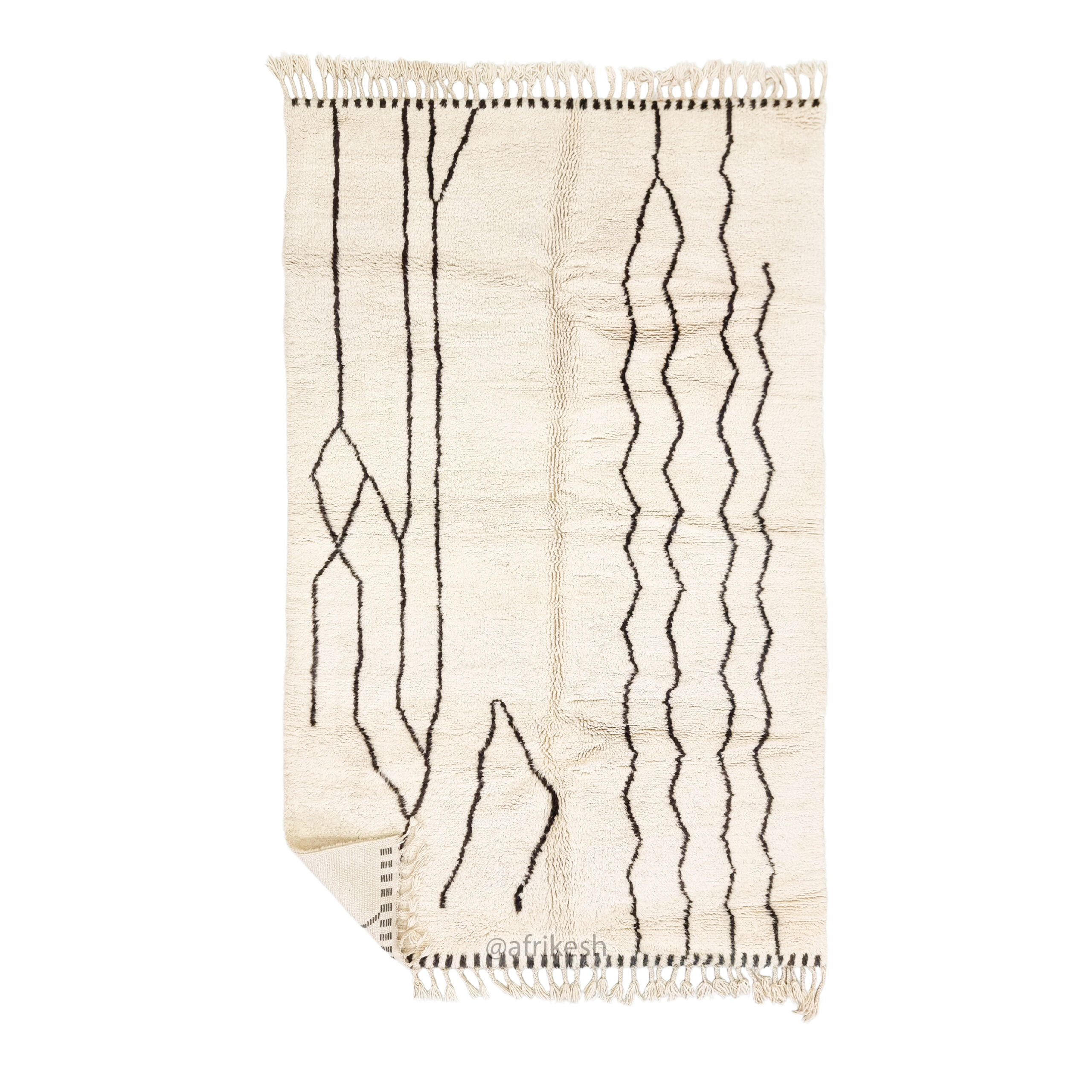 Discover Beni Ourain rugs by Afrikesh, crafted by the Beni Ourain tribe in Morocco's Atlas Mountains. These custom size rugs feature undyed wool and geometric patterns that tell a rich cultural story. With their neutral color palette and traditional craftsmanship, Beni rugs offer both aesthetic appeal and historical significance.