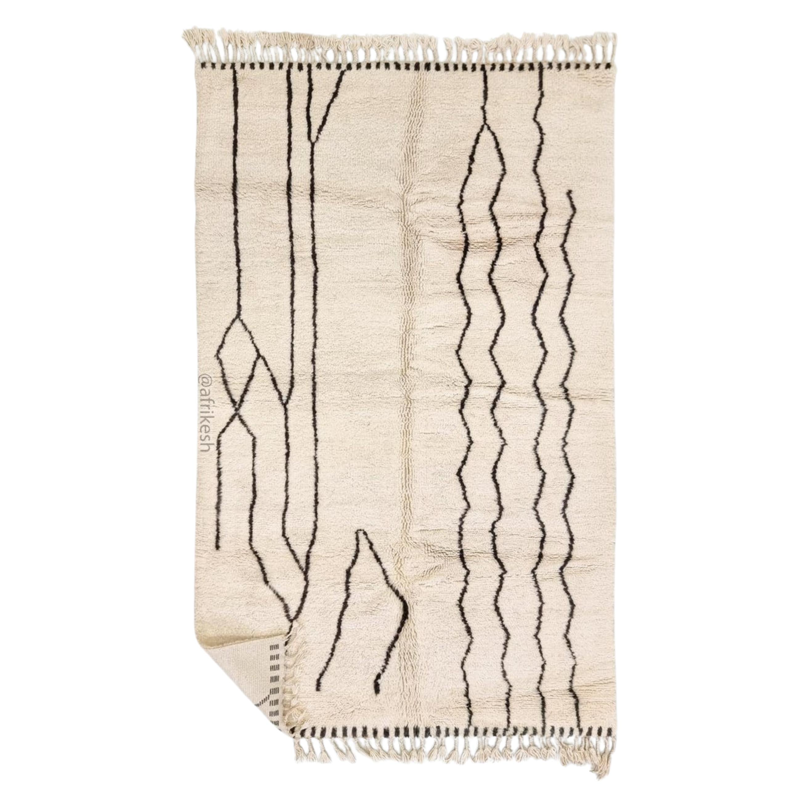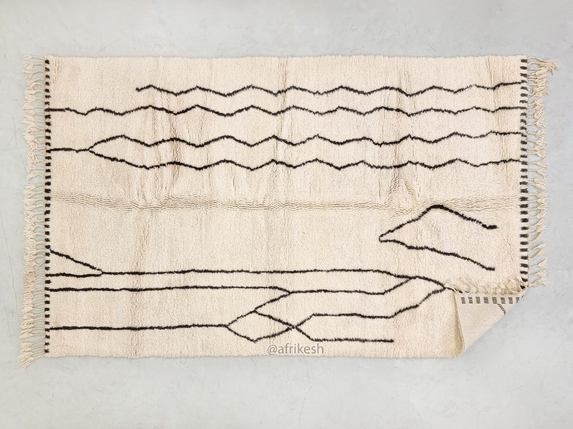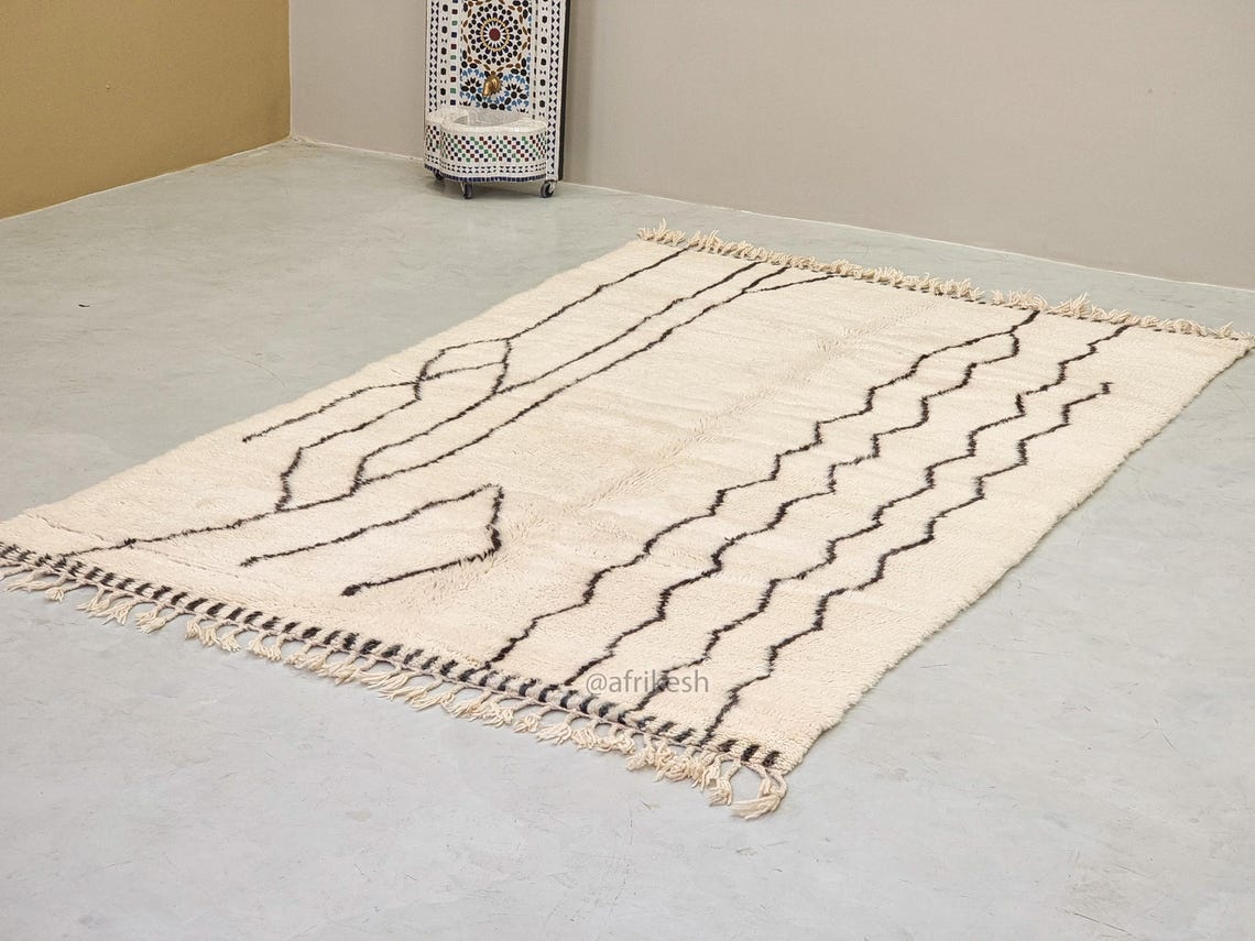 White and Black Rug | Moroccan Beni Ourain Striped Carpet– Custom Sizes