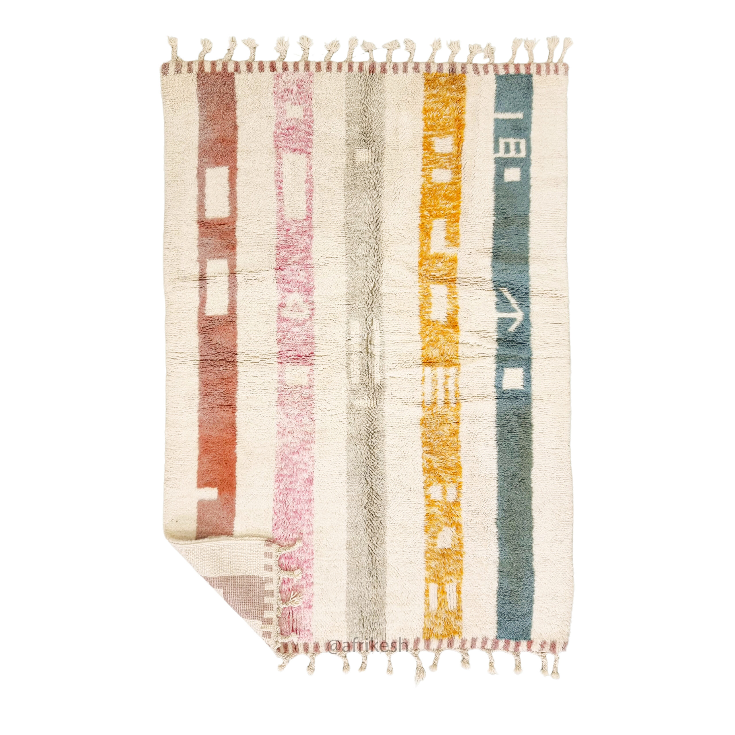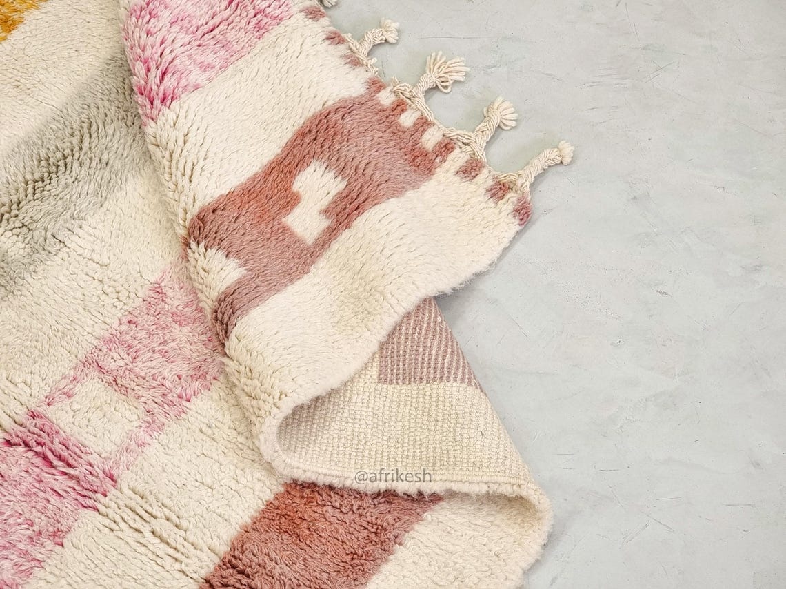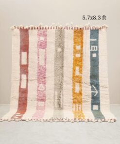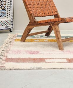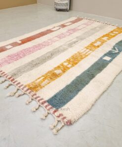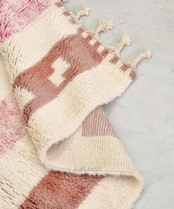 Beni Ourain Rug 5×8 – White and Pink Striped Carpet | Handmade Moroccan Rug