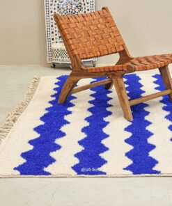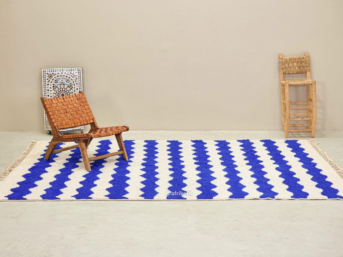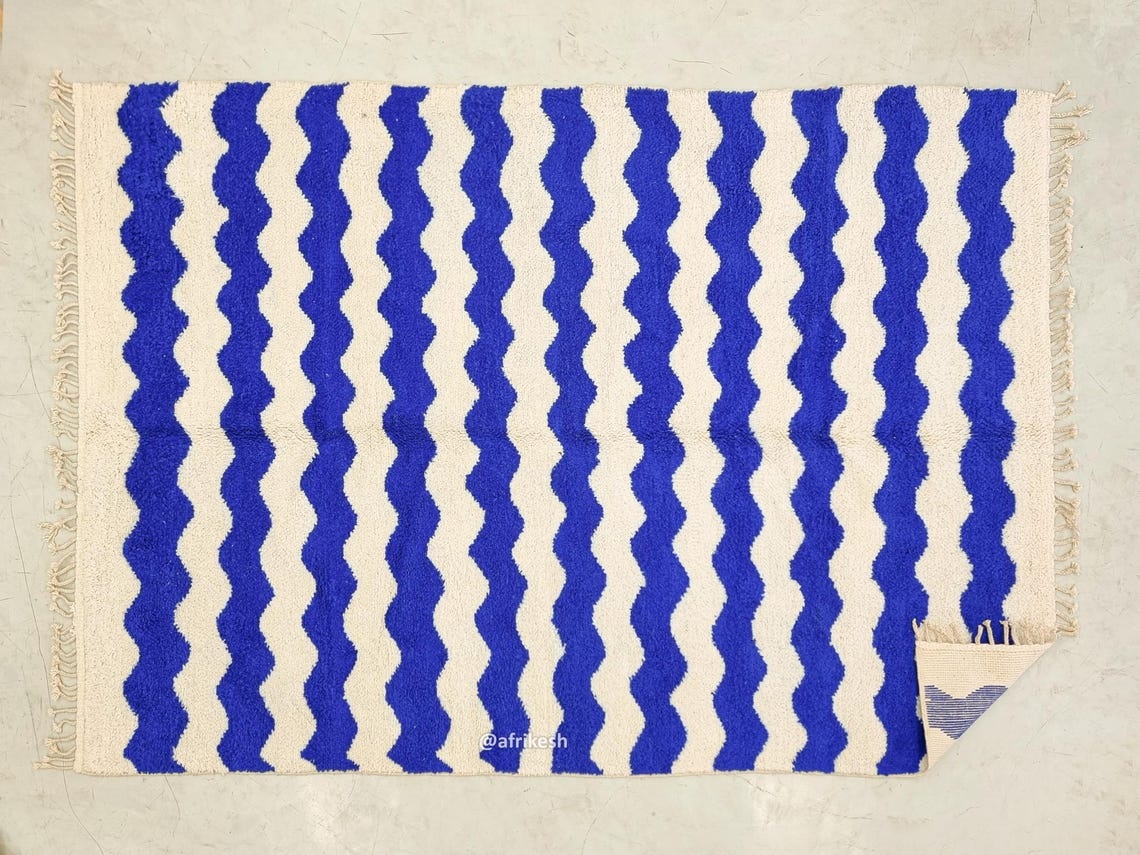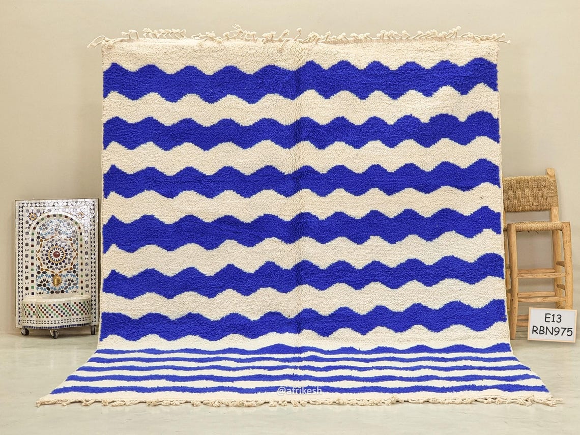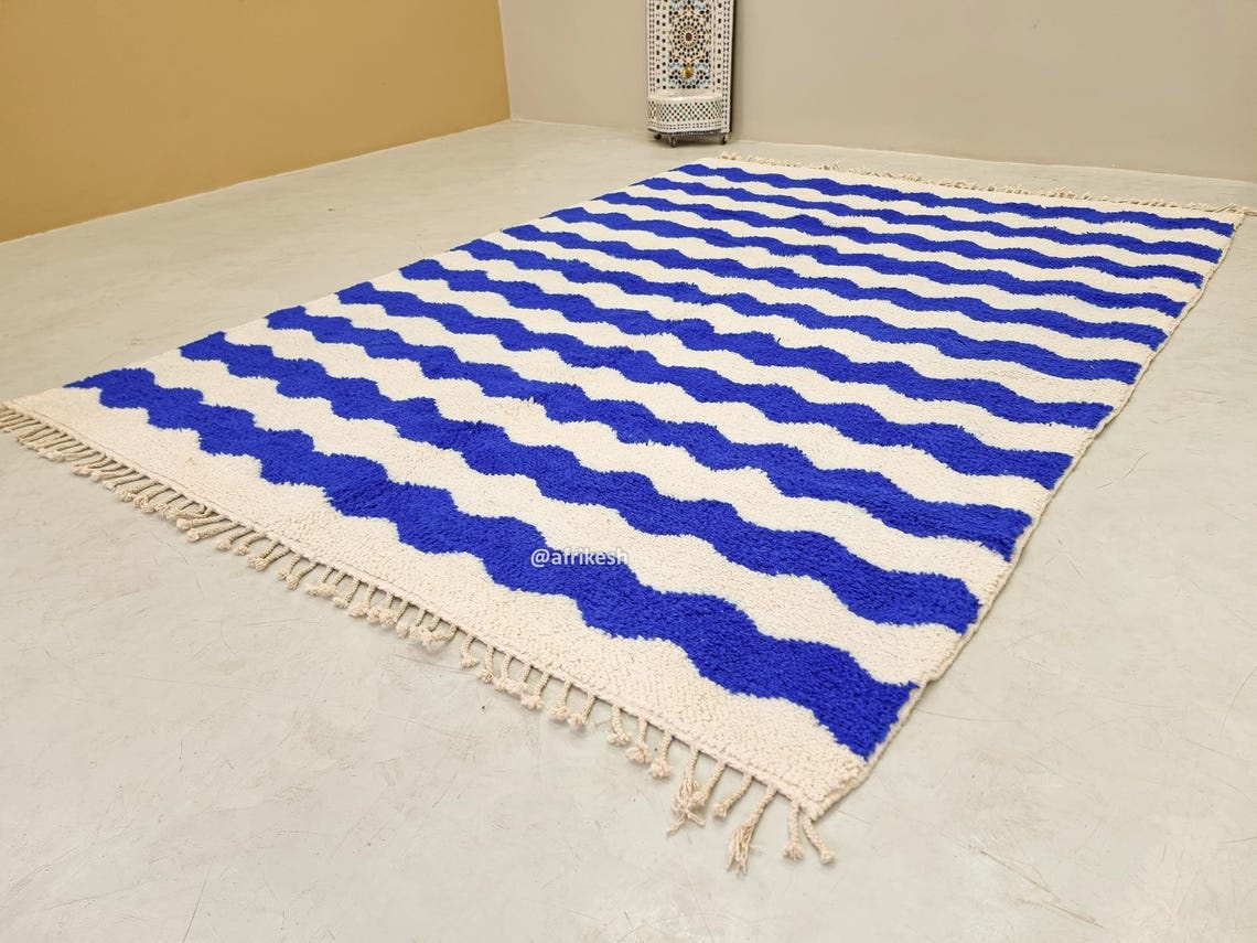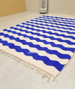 Beni Ourain White And Blue Rug – Striped Carpet 8×11
