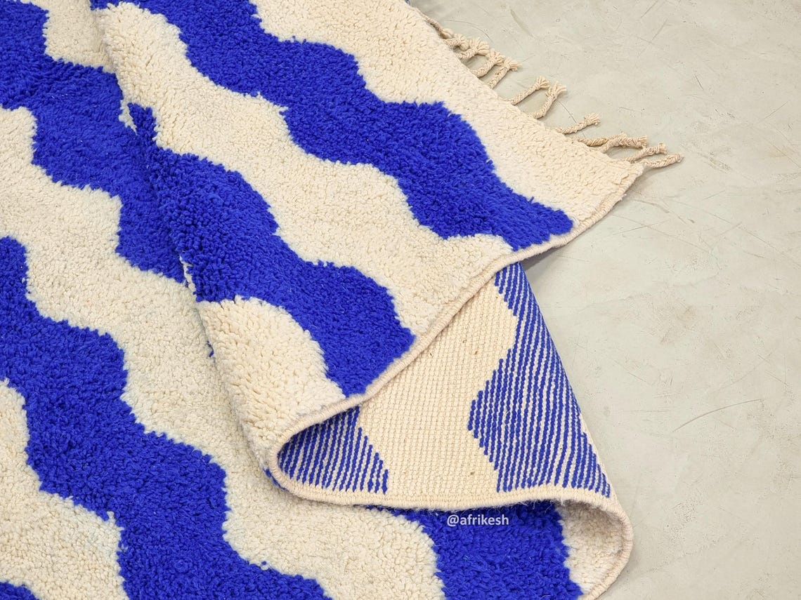 Discover Beni Ourain rugs by Afrikesh, crafted by the Beni Ourain tribe in Morocco's Atlas Mountains. These custom size rugs feature undyed wool and geometric patterns that tell a rich cultural story. With their neutral color palette and traditional craftsmanship, Beni rugs offer both aesthetic appeal and historical significance.