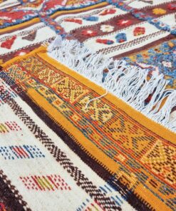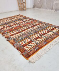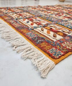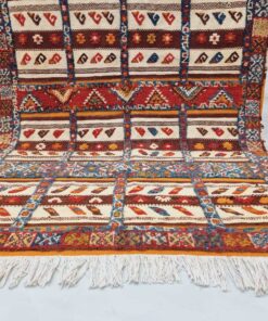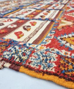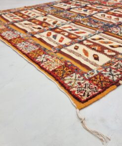 Taznakht rugs, hailing from the town of Taznakht in the High Atlas region of Morocco, are woven treasures that reflect the rich cultural tapestry of the Berber people. Known for their vibrant colors and intricate designs, Taznakht rugs often feature geometric patterns and symbolic motifs, each telling a unique story. The weavers infuse these rugs with a bold, lively spirit, utilizing a diverse palette and skillful techniques. Taznakht rugs not only serve as beautiful and functional floor coverings but also stand as proud representations of Berber tradition and artistic expression.