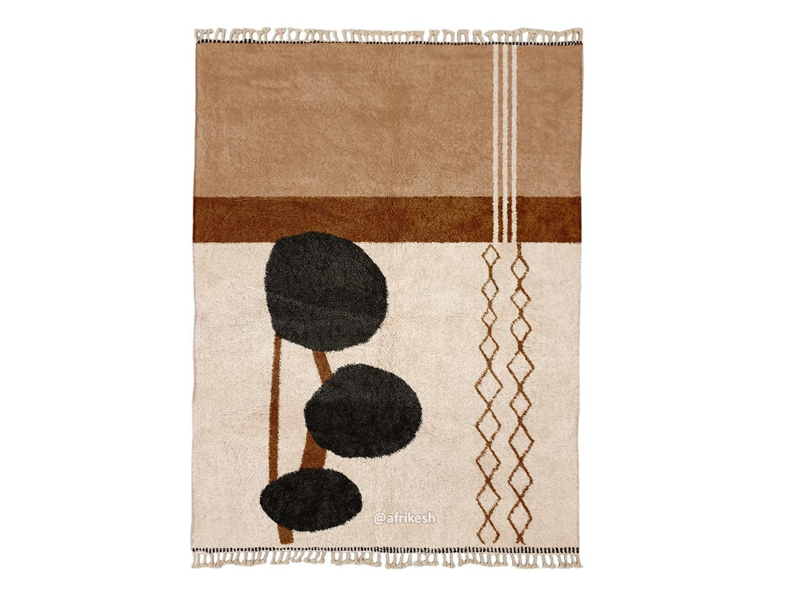 Discover Beni Ourain rugs by Afrikesh, crafted by the Beni Ourain tribe in Morocco's Atlas Mountains. These custom size rugs feature undyed wool and geometric patterns that tell a rich cultural story. With their neutral color palette and traditional craftsmanship, Beni rugs offer both aesthetic appeal and historical significance.