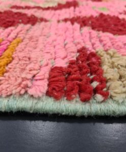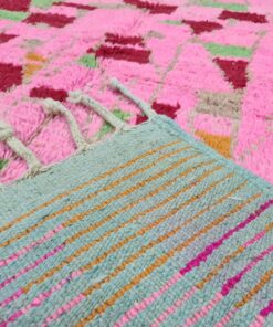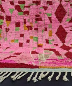 Boujaad rugs, originating from the eponymous region in the Middle Atlas Mountains of Morocco, are captivating expressions of traditional craftsmanship. Known for their vibrant colors, intricate geometric patterns, and a distinctive use of red and pink hues, Boujaad rugs exude warmth and cultural richness. These handwoven gems often feature asymmetrical designs, reflecting the weaver's personal creativity within the framework of age-old techniques. A Boujaad rug is not merely a floor covering; it's a testament to the artisan's skill, the region's heritage, and the vibrant spirit of Moroccan craftsmanship.