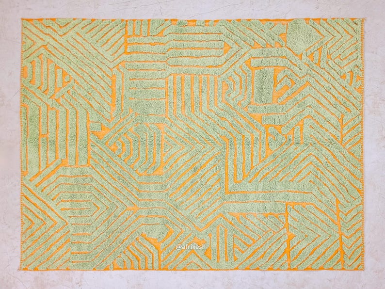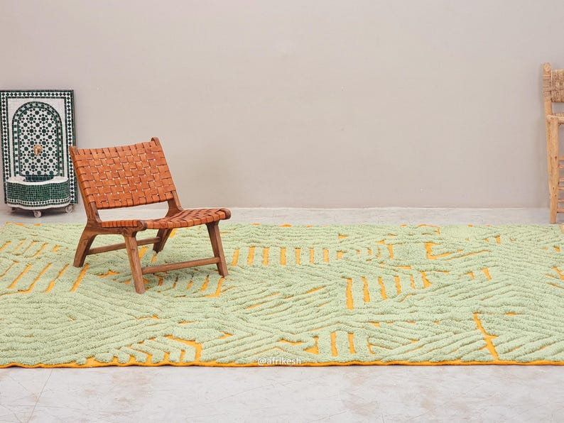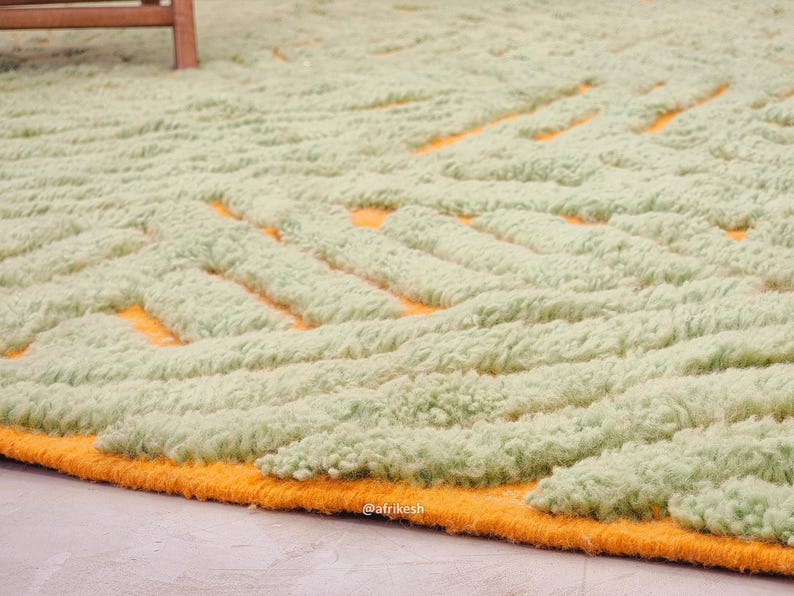 Beni Ourain Rug – Tufted Custom Mustard & Sage green Rug