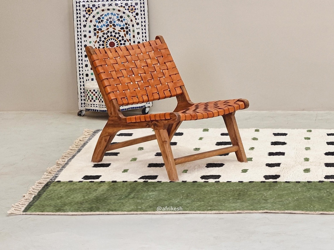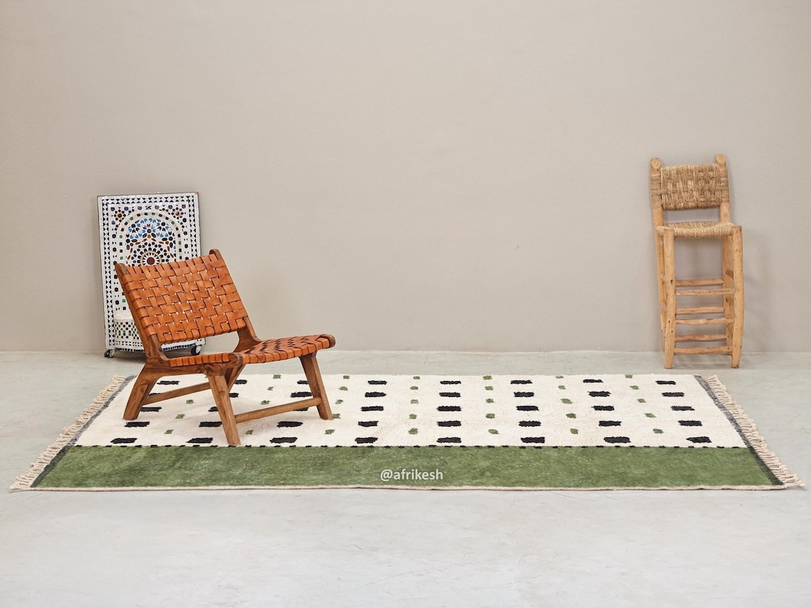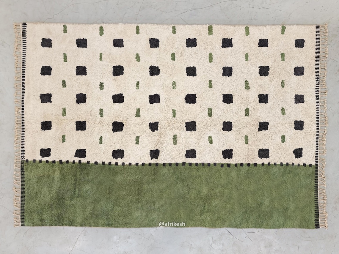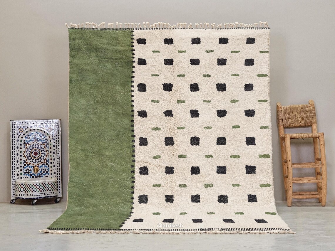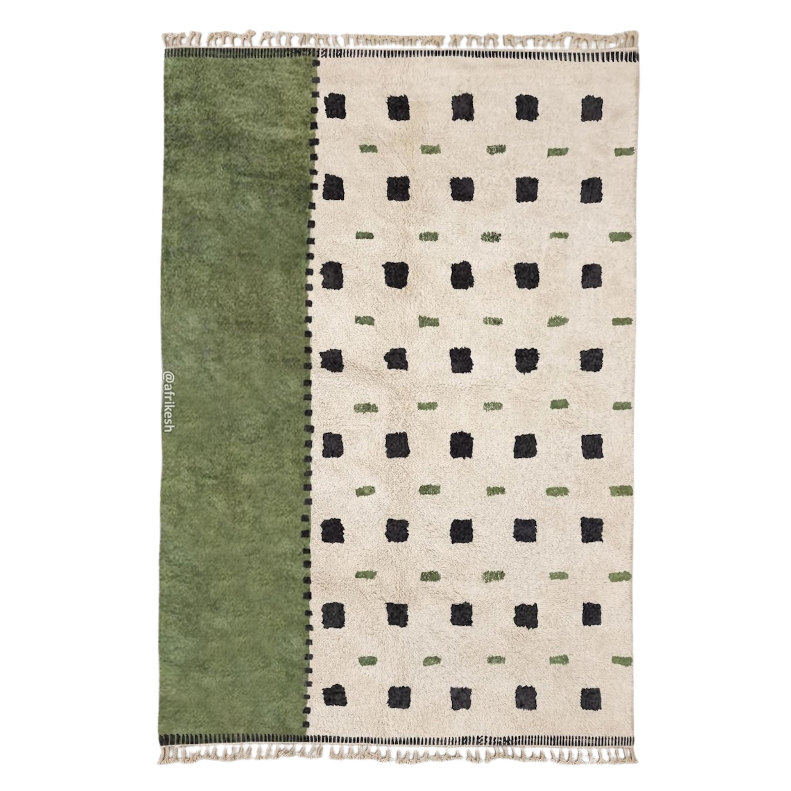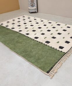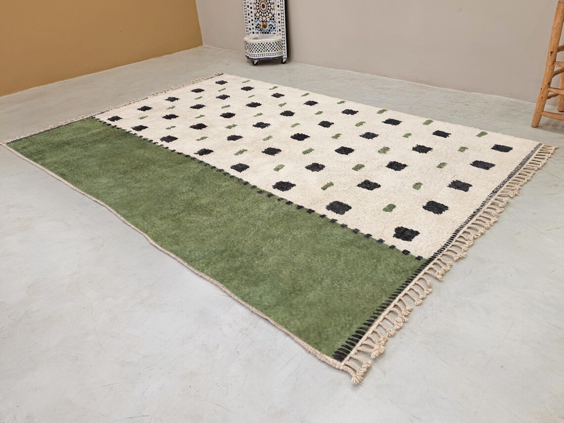 Moroccan Beni Ourain Rug Green and White – Custom Geometric Berber Rug