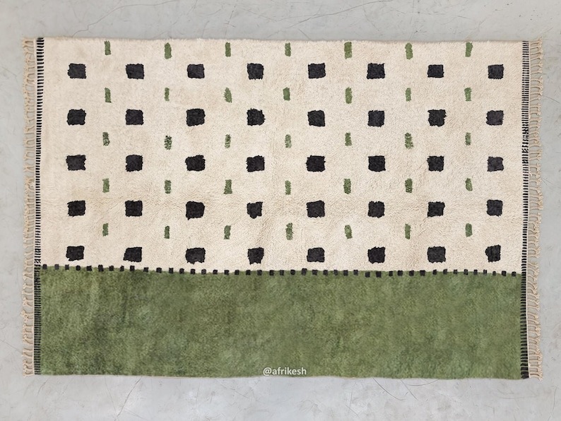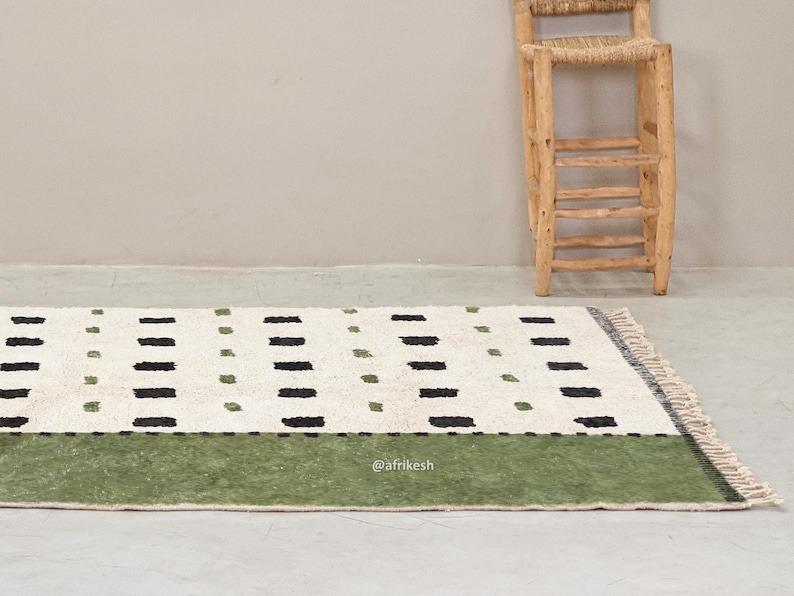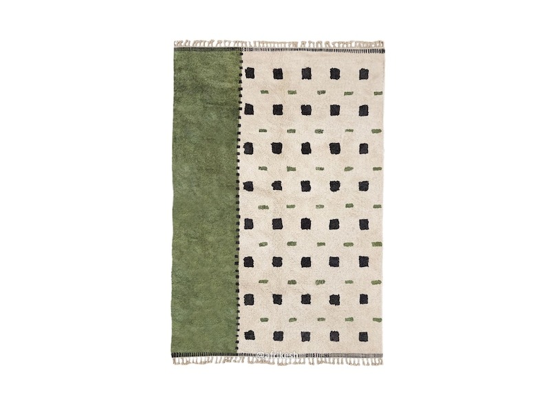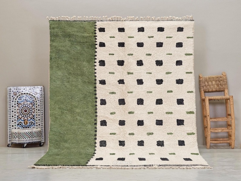Tidili – Moroccan Beni Ourain Rug Green and White – Custom Geometric Berber Rug