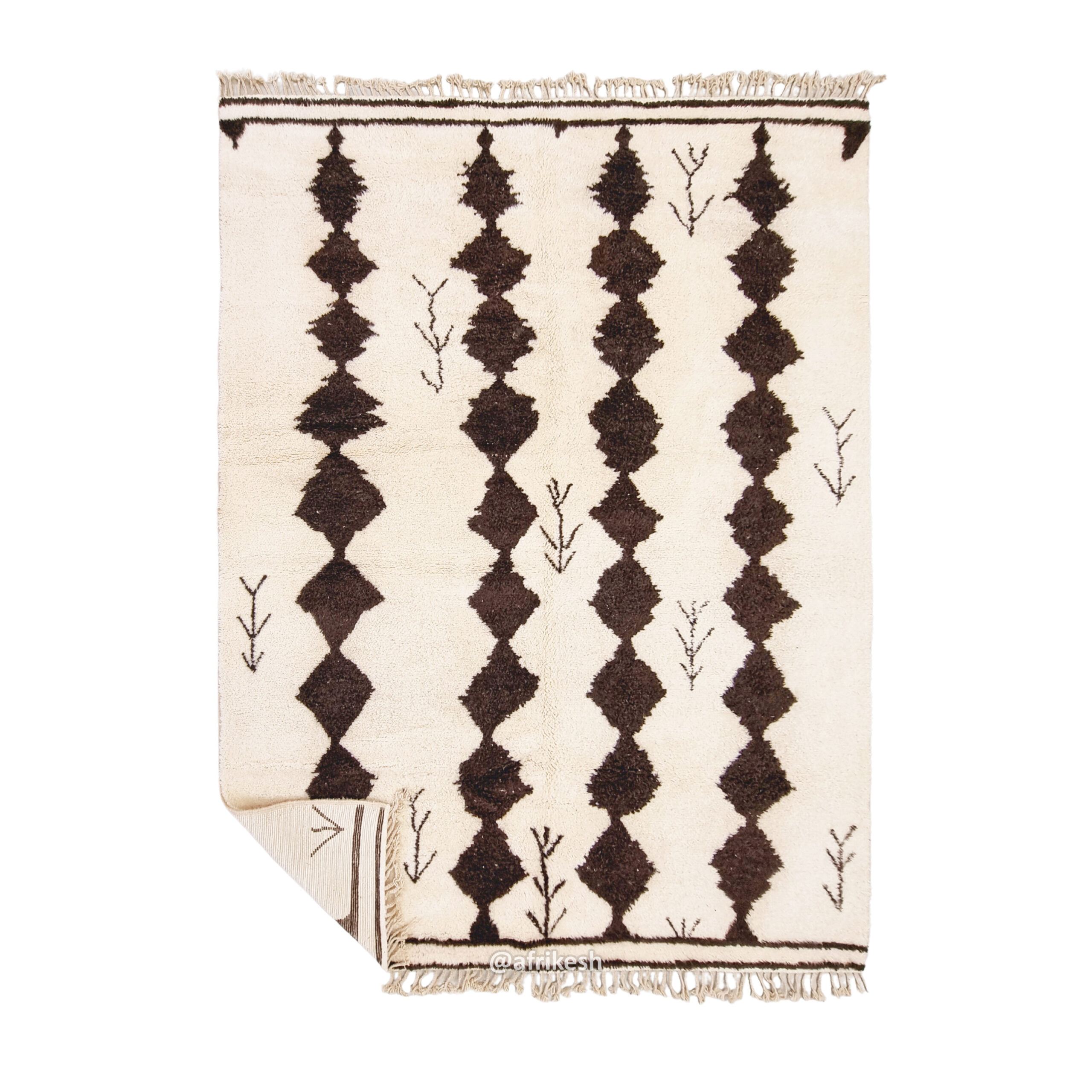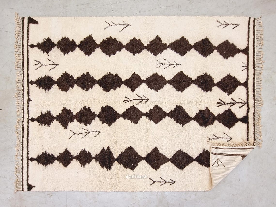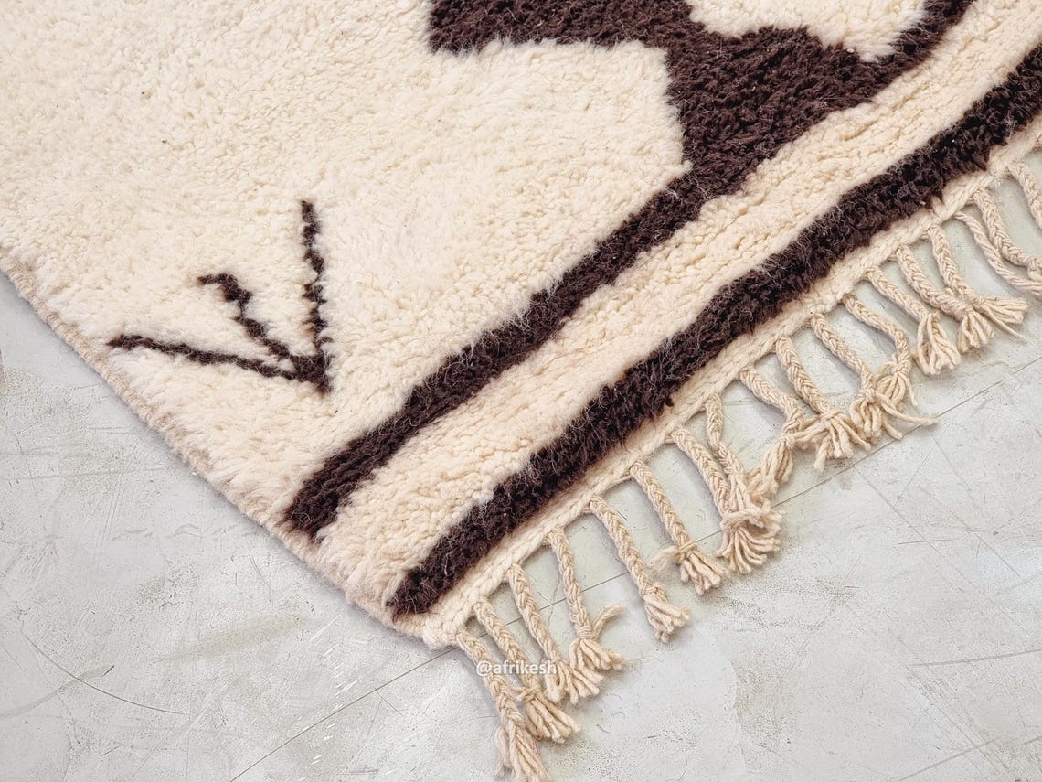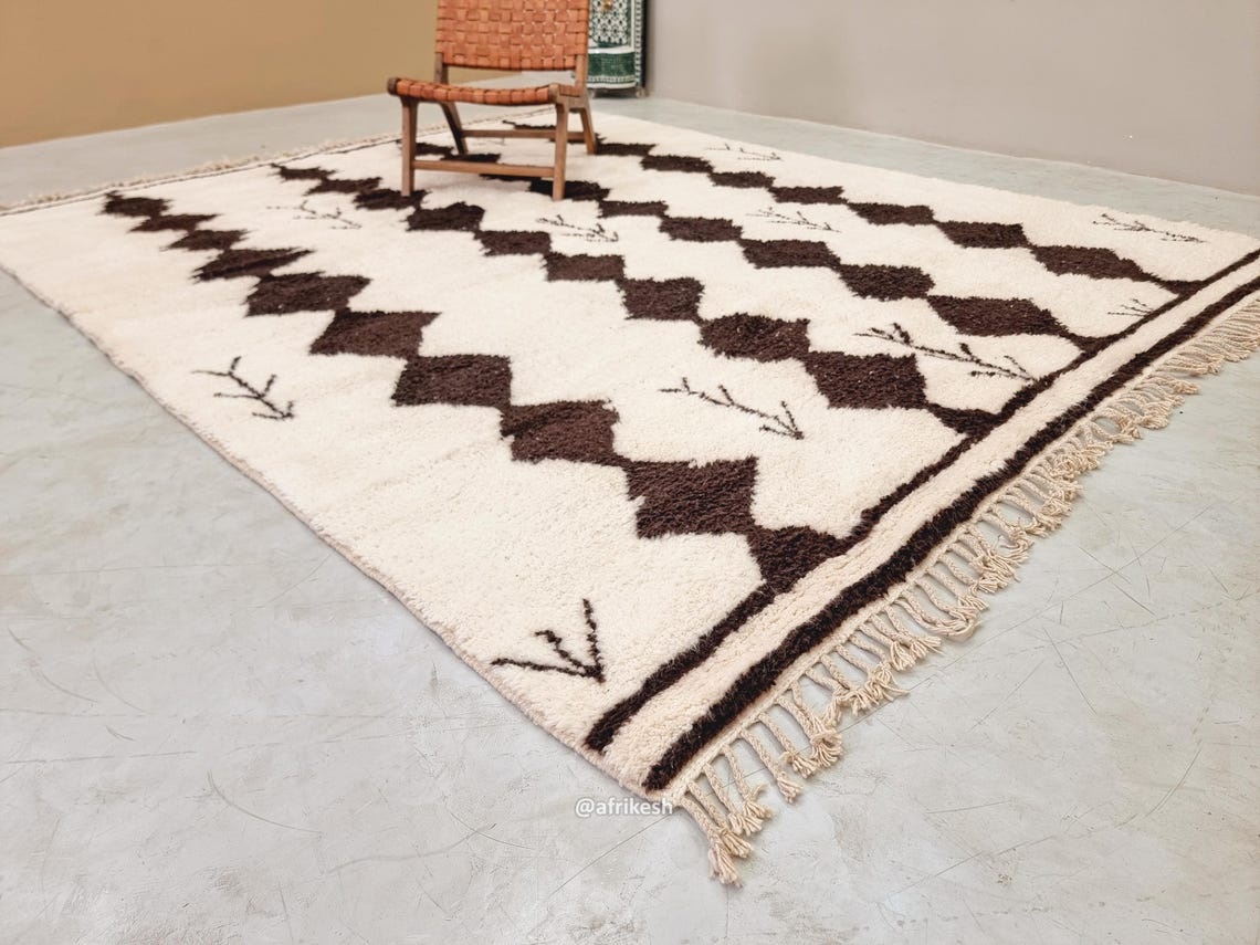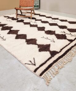 Beni Ourain Geometric Rug 9×11 – Moroccan White And Brown Rug