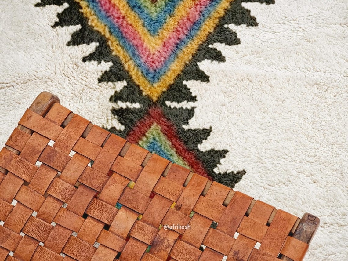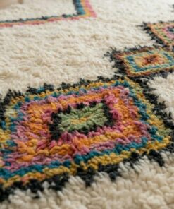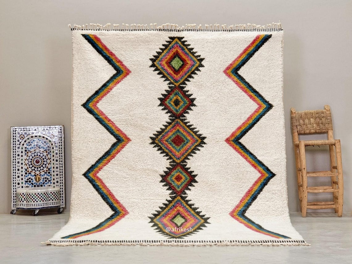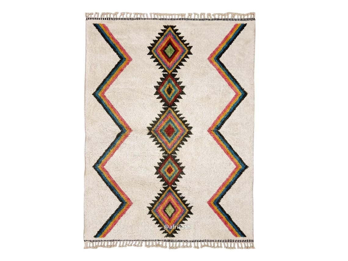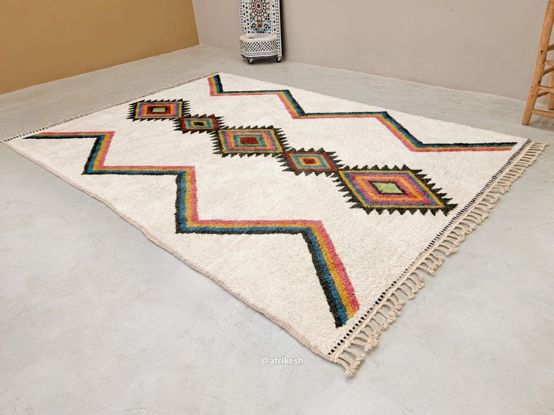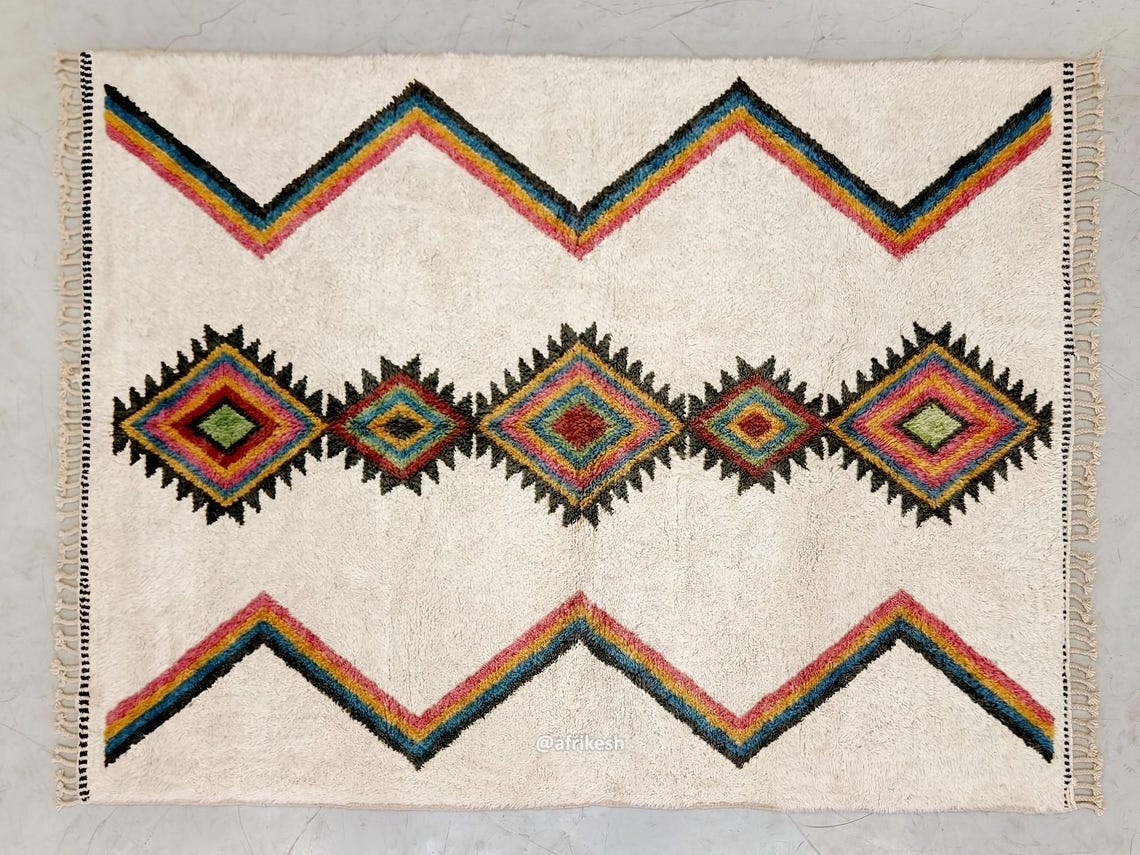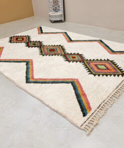 Moroccan Beni Ourain Artistic Rug- Colorful Geometric Azilal Carpet