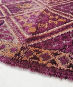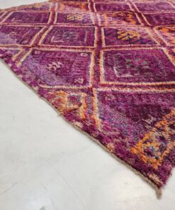 Beni M'Guild rugs, originating from the Beni M'Guild tribe in the Middle Atlas Mountains of Morocco, are striking examples of traditional Berber craftsmanship. These handwoven rugs are characterized by their deep, bold colors, intricate geometric patterns, and the use of symbolic motifs that convey the tribe's cultural stories. Often featuring a central composition surrounded by borders, Beni M'Guild rugs showcase the weaver's artistry and attention to detail. With a plush pile and a blend of rich, earthy tones, these rugs not only add warmth and texture to a space but also serve as timeless pieces that embody the heritage and creativity of the Beni M'Guild tribe.