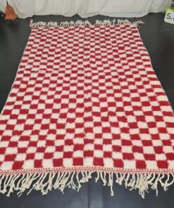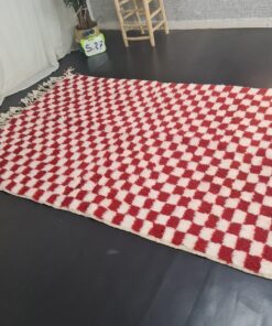 Red Beni Ourain Rug – Moroccan Checkered Rug 5×8