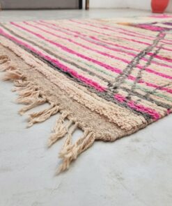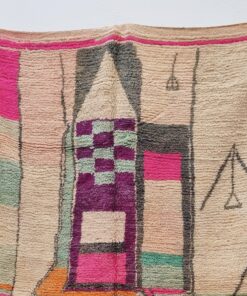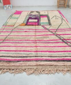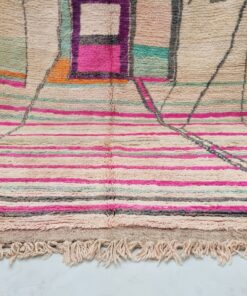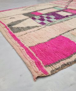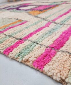 Beni M'Guild rugs, originating from the Beni M'Guild tribe in the Middle Atlas Mountains of Morocco, are striking examples of traditional Berber craftsmanship. These handwoven rugs are characterized by their deep, bold colors, intricate geometric patterns, and the use of symbolic motifs that convey the tribe's cultural stories. Often featuring a central composition surrounded by borders, Beni M'Guild rugs showcase the weaver's artistry and attention to detail. With a plush pile and a blend of rich, earthy tones, these rugs not only add warmth and texture to a space but also serve as timeless pieces that embody the heritage and creativity of the Beni M'Guild tribe.