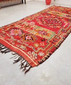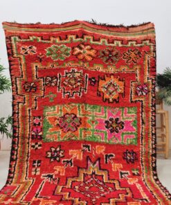 Beni M'Guild rugs, originating from the Beni M'Guild tribe in the Middle Atlas Mountains of Morocco, are striking examples of traditional Berber craftsmanship. These handwoven rugs are characterized by their deep, bold colors, intricate geometric patterns, and the use of symbolic motifs that convey the tribe's cultural stories. Often featuring a central composition surrounded by borders, Beni M'Guild rugs showcase the weaver's artistry and attention to detail. With a plush pile and a blend of rich, earthy tones, these rugs not only add warmth and texture to a space but also serve as timeless pieces that embody the heritage and creativity of the Beni M'Guild tribe.