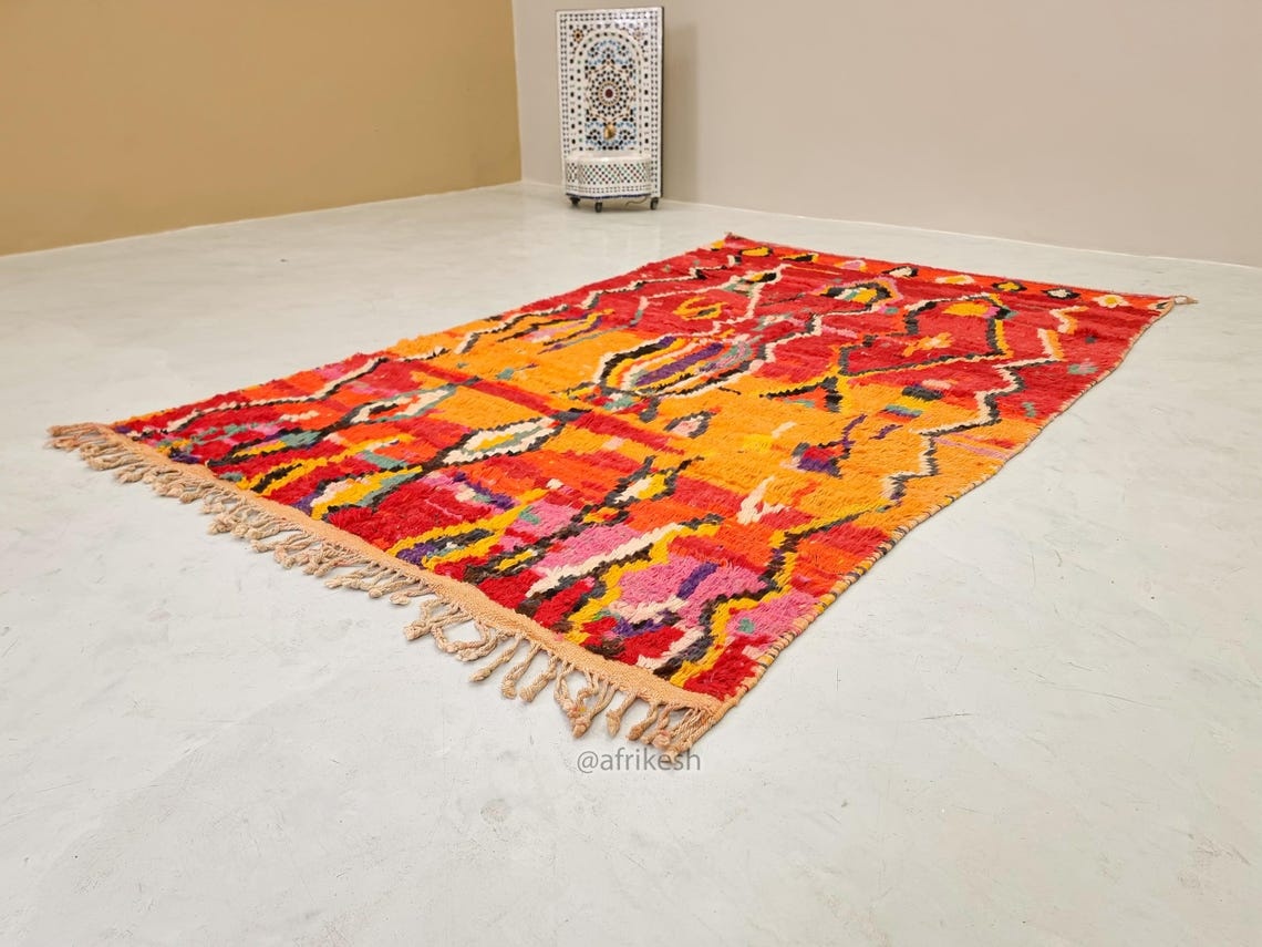 Boujaad rugs, originating from the eponymous region in the Middle Atlas Mountains of Morocco, are captivating expressions of traditional craftsmanship. Known for their vibrant colors, intricate geometric patterns, and a distinctive use of red and pink hues, Boujaad rugs exude warmth and cultural richness. These handwoven gems often feature asymmetrical designs, reflecting the weaver's personal creativity within the framework of age-old techniques. A Boujaad rug is not merely a floor covering; it's a testament to the artisan's skill, the region's heritage, and the vibrant spirit of Moroccan craftsmanship.