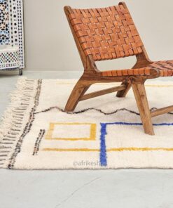 3 reviews for Yuba – White and Yellow Striped Beni Ourain Rug – Handmade in Natural Wool, Custom Made