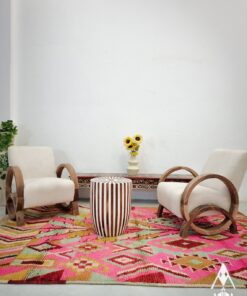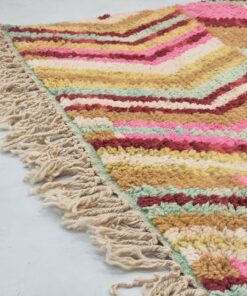 Boujaad rugs, originating from the eponymous region in the Middle Atlas Mountains of Morocco, are captivating expressions of traditional craftsmanship. Known for their vibrant colors, intricate geometric patterns, and a distinctive use of red and pink hues, Boujaad rugs exude warmth and cultural richness. These handwoven gems often feature asymmetrical designs, reflecting the weaver's personal creativity within the framework of age-old techniques. A Boujaad rug is not merely a floor covering; it's a testament to the artisan's skill, the region's heritage, and the vibrant spirit of Moroccan craftsmanship.