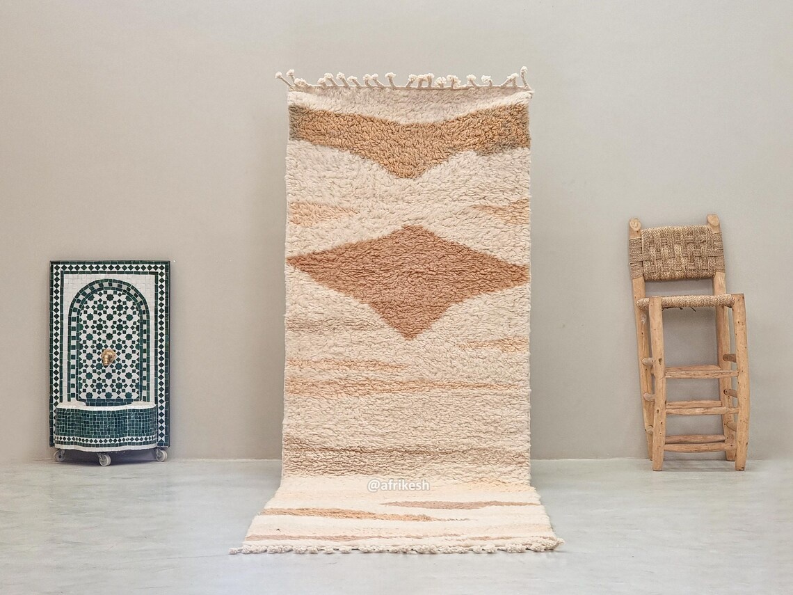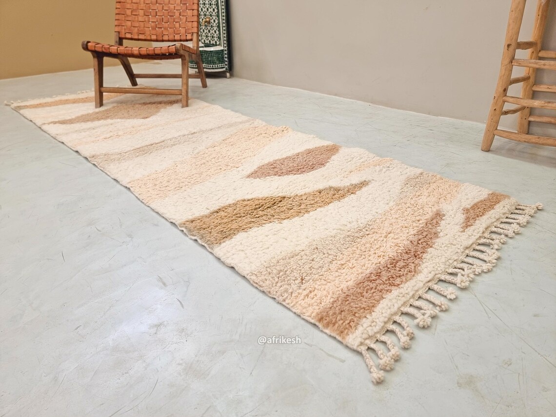brown and white Runner – Beni Ourain Custom Abstract Rug
