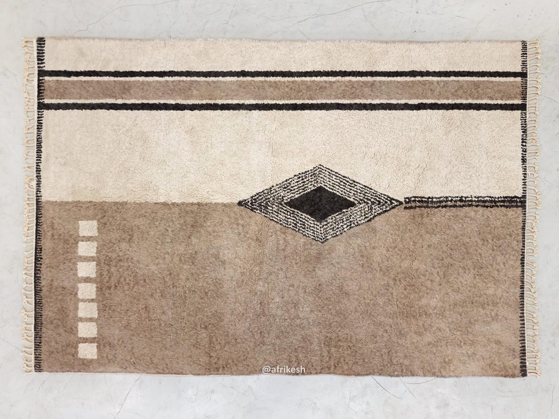 Discover Beni Ourain rugs by Afrikesh, crafted by the Beni Ourain tribe in Morocco's Atlas Mountains. These custom size rugs feature undyed wool and geometric patterns that tell a rich cultural story. With their neutral color palette and traditional craftsmanship, Beni rugs offer both aesthetic appeal and historical significance.