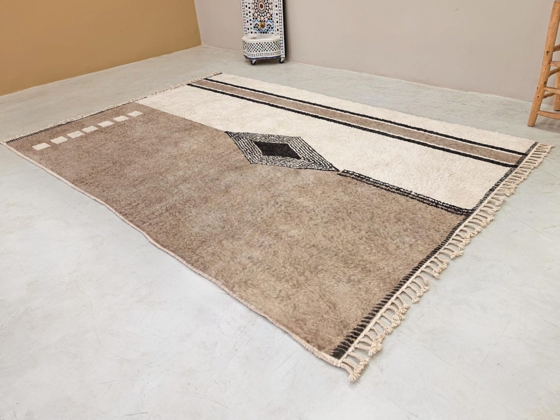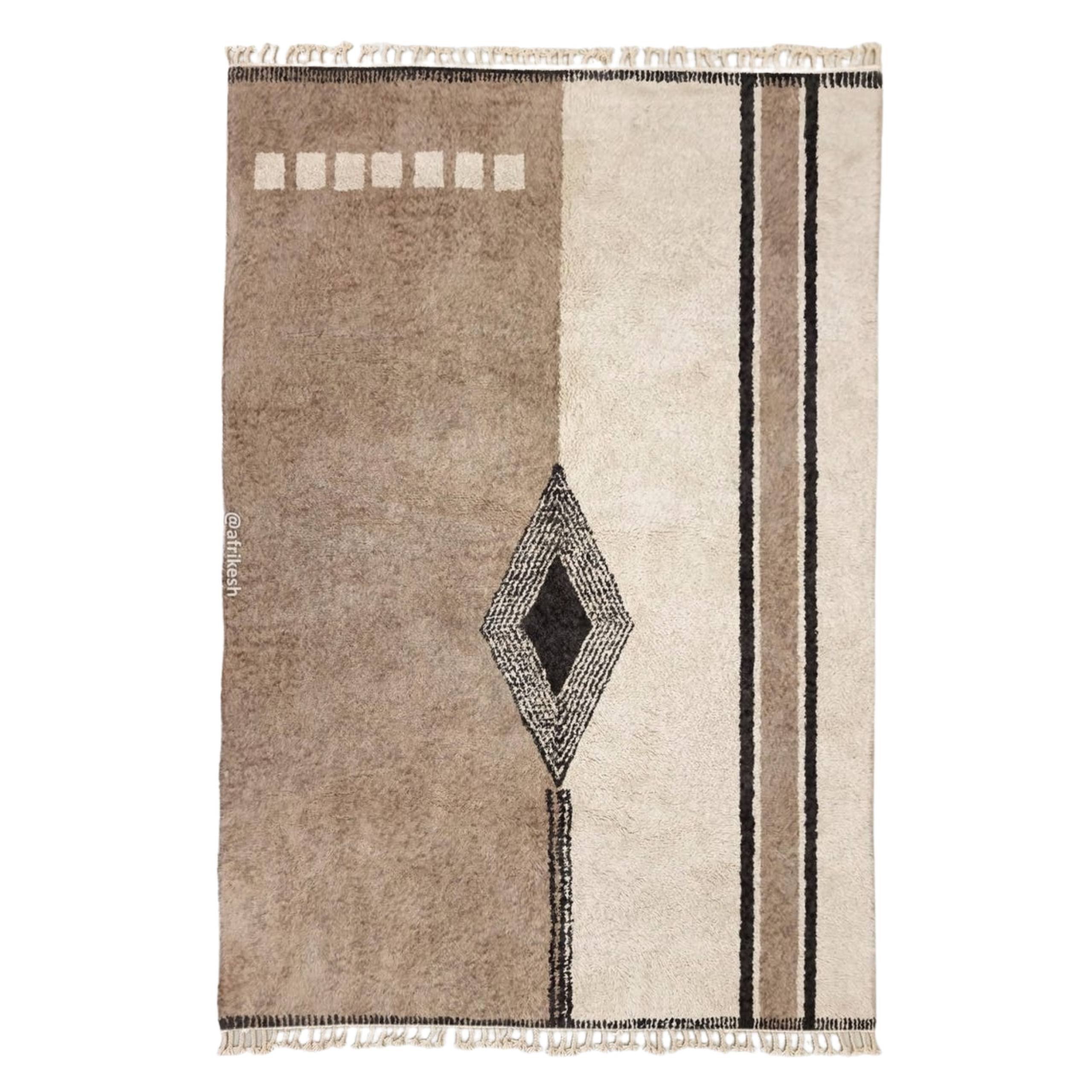 Zayd– Moroccan Beni Ourain Rug Beige and White – Custom Geometric Berber Rug