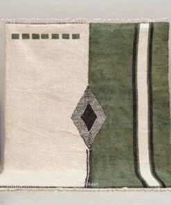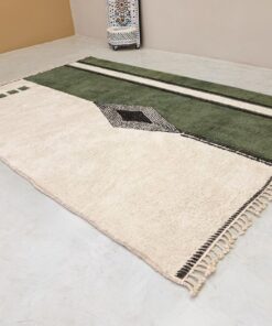 Zayd– Moroccan Beni Ourain Rug Green and White – Custom Geometric Berber Rug