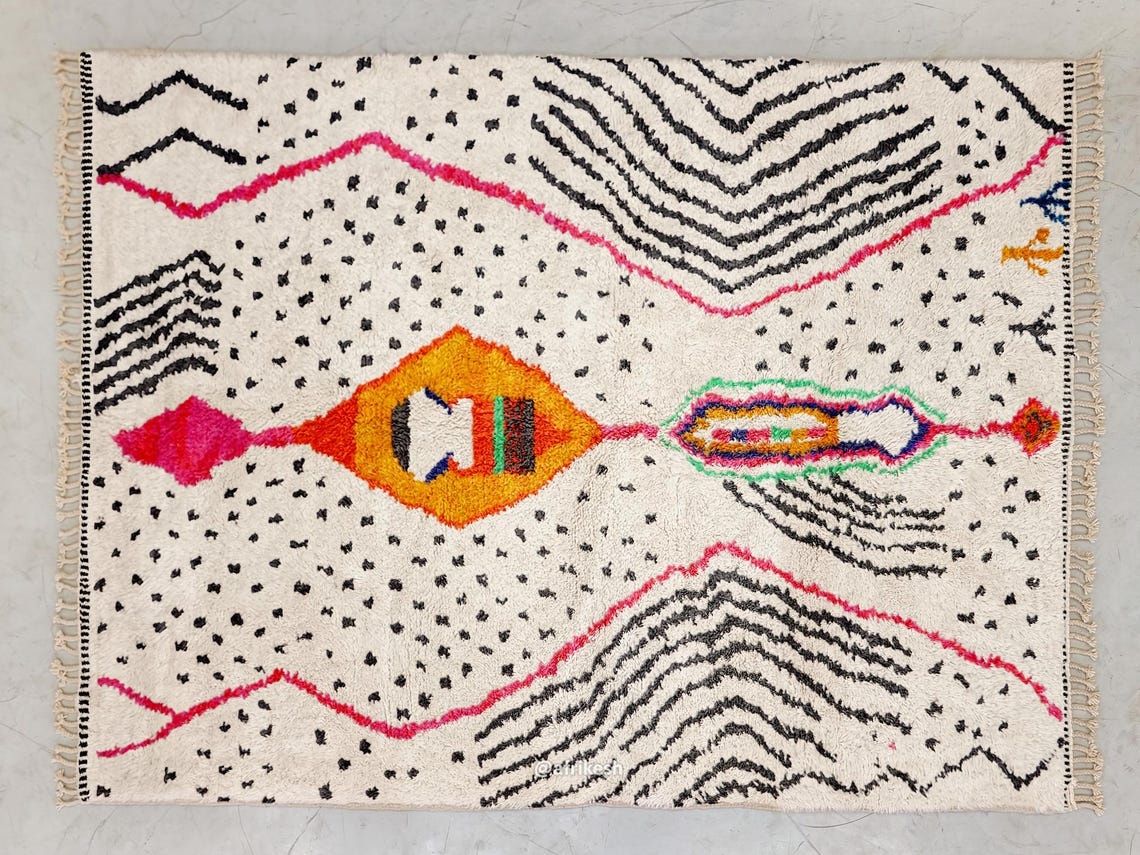 Moroccan Beni Ourain Artistic Rug- Colorful Geometric Azilal Carpet