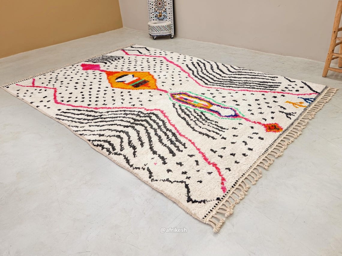 With a diverse range of customizable patterns, colors, and sizes, these rugs allow you to express your personal style while adding a touch of elegance to your decor. Known for their striking geometric designs and soft, luxurious wool, Beni Ourain rugs not only enhance the beauty of your living room, bedroom, or office but also provide warmth and comfort underfoot.
