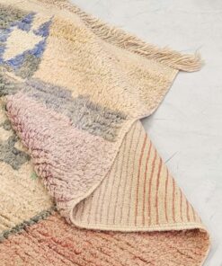Boujaad rugs, originating from the eponymous region in the Middle Atlas Mountains of Morocco, are captivating expressions of traditional craftsmanship. Known for their vibrant colors, intricate geometric patterns, and a distinctive use of red and pink hues, Boujaad rugs exude warmth and cultural richness. These handwoven gems often feature asymmetrical designs, reflecting the weaver's personal creativity within the framework of age-old techniques. A Boujaad rug is not merely a floor covering; it's a testament to the artisan's skill, the region's heritage, and the vibrant spirit of Moroccan craftsmanship.